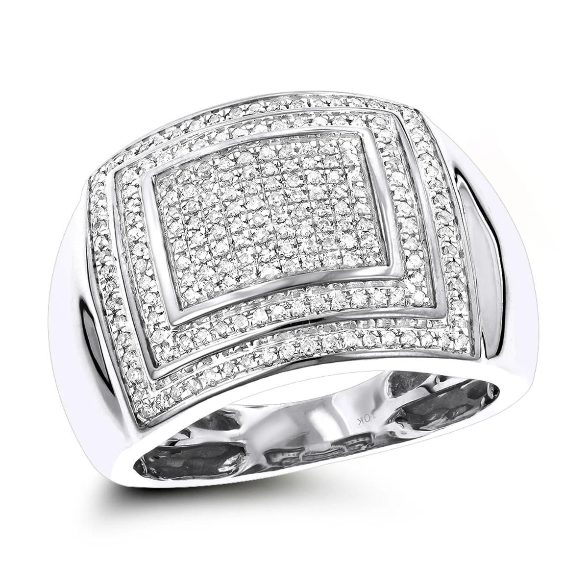 This masculine 10K Gold Diamond Ring for Men by Luxurman features 1/2 carat of beautiful pave round cut diamonds that dazzle with everlasting brilliance. These sparkly natural diamonds draw your attention to the center square and are accented by a pave set round cut diamond frames, which adds sparkle and gives a classic feel to the lustrous 10K gold. This amazing men’s diamond ring is available in 10K yellow, white and rose gold and makes a perfect gift for any occasion!
