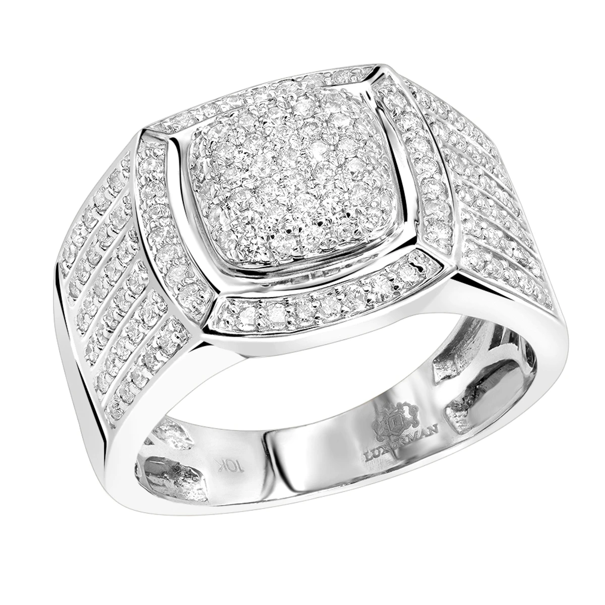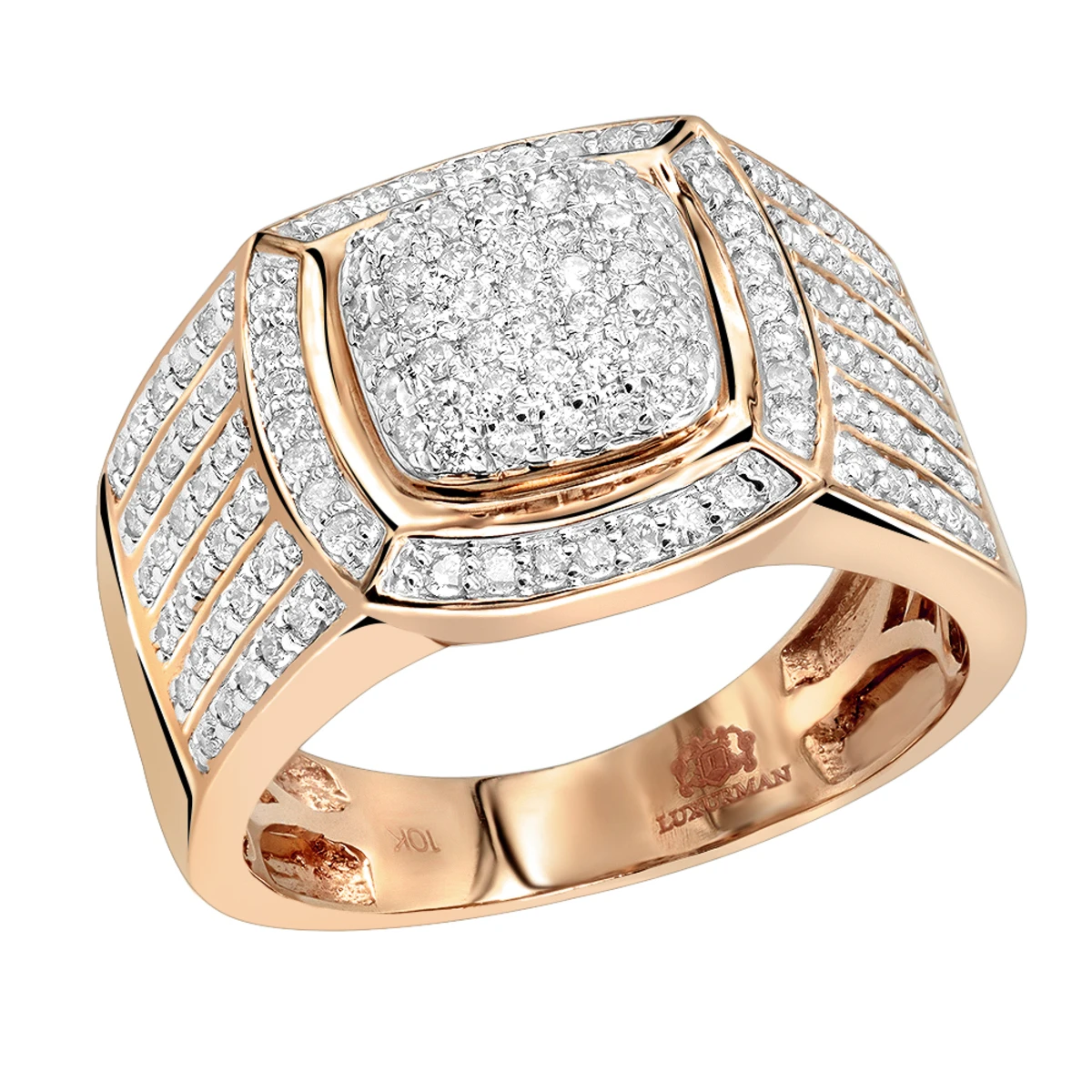 Pinky Rings collection: This solid 10k Gold Men’s Diamond Ring by Luxurman weights approximately 10.5 grams and showcases 1 carat of shiny round cut diamonds masterfully pave set in highly polished 10K gold; this masculine diamond ring for men makes a per