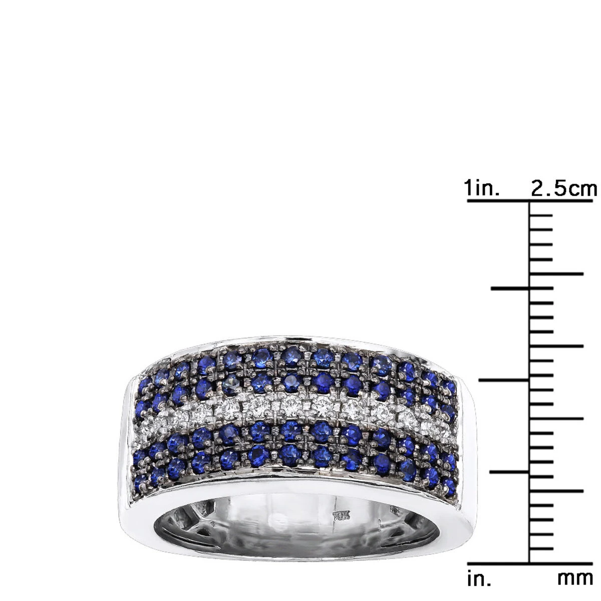 10K White Gold 5 Row 2.25 Carat Diamond And Sapphire Men’s Wedding Band Unique Ring
