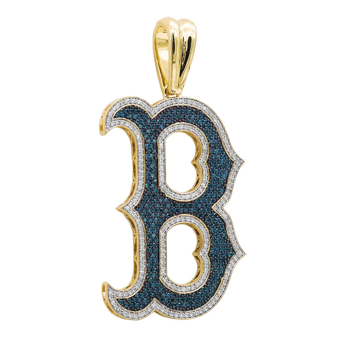 10K Yellow Gold 5 Carat Blue & White Diamond Initial Alphabet Letter Pendant For Men