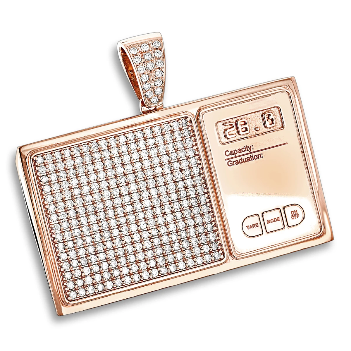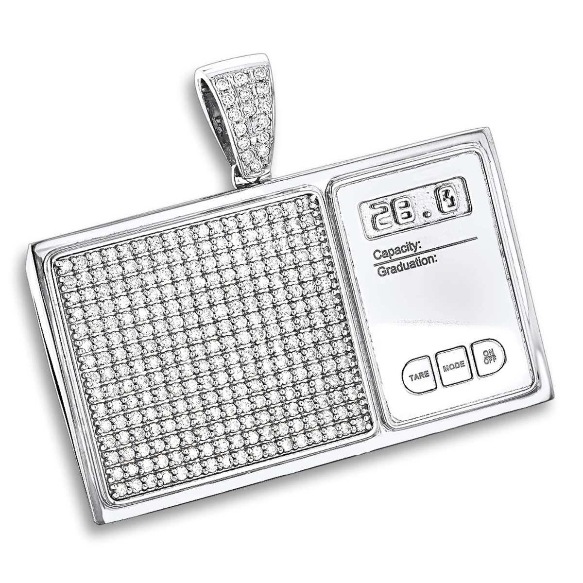Custom Jewelry: This 10K Gold Diamond Digital Scale Men’s Pendant showcases 4 carats of dazzling round diamonds masterfully set in 10K gold base. This men’s custom pendant is available in 10K, 14K, 18K Gold and Platinum, with any color/clarity diamonds, if desired option not listed, please contact us – 212-398-3123.