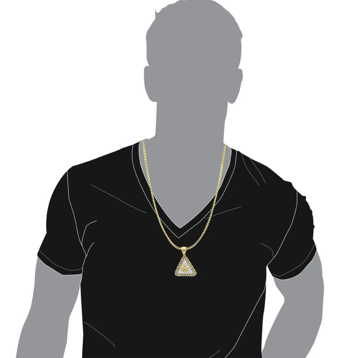10K Yellow Gold Diamond Medusa Head Triangle Pendant Cuban Link Chain 0.8ct