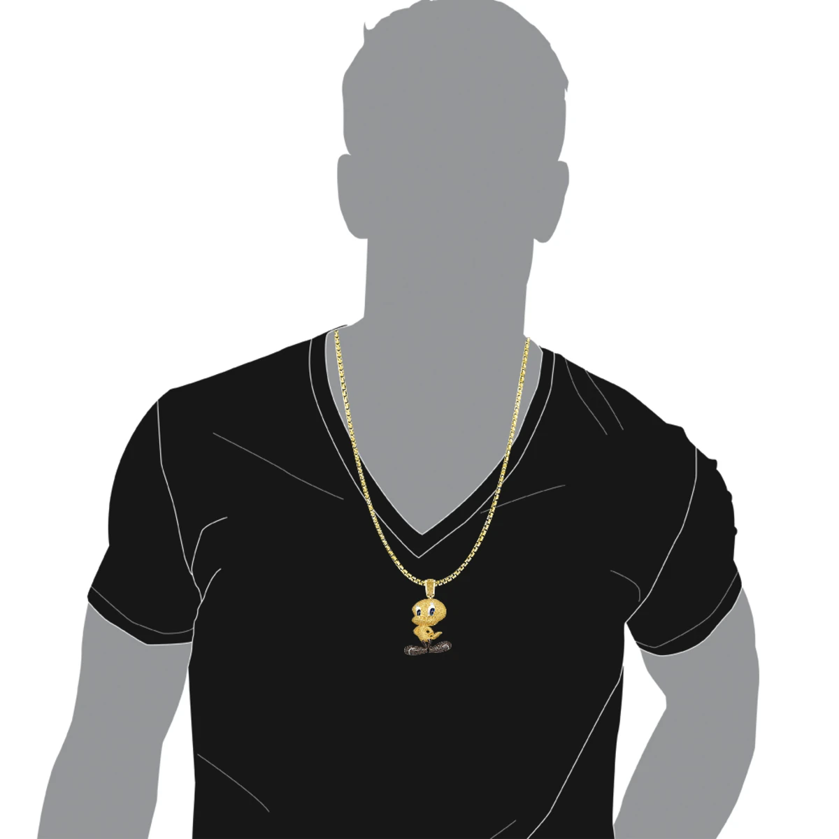 This Real 10K Gold Tweety Bird Diamond Pendant from our fancy color diamond jewelry collection showcases 4.11 carats of fancy yellow and blue diamonds, each masterfully set in a lustrous gold frame. Featuring a 3-d look and a highly polished gold finish, this diamond Tweety Bird pendant is fully customizable and is available in 10K white, yellow and rose gold. You also can personalize this piece or check we’ve already made and create your own design.