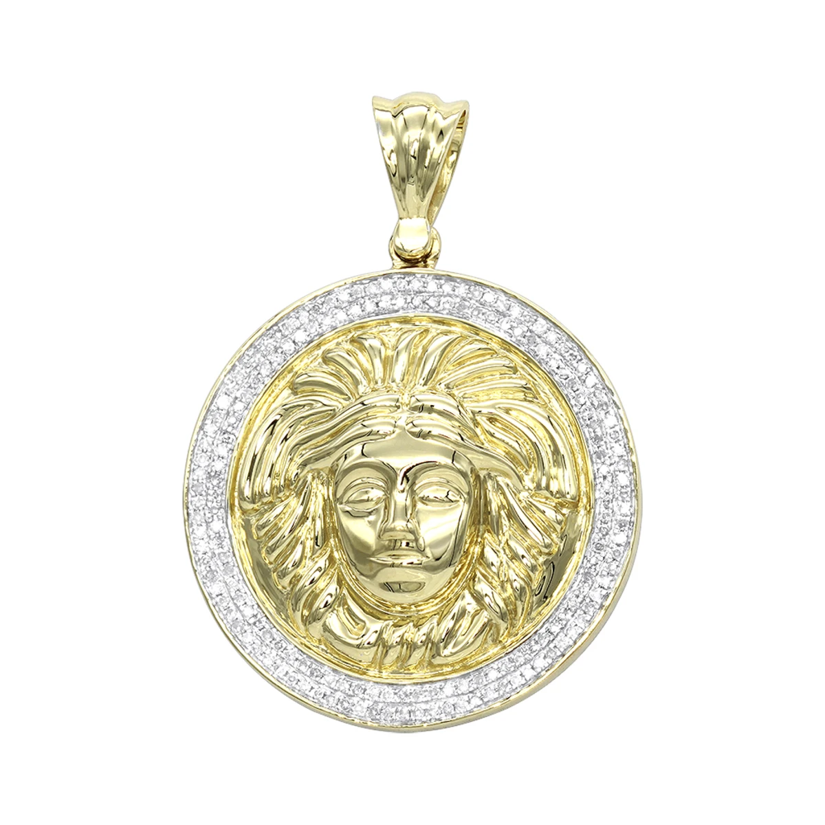 10K Yellow Gold Versace Style Diamond Pendant Medusa Head Medallion For Men 0.5ct