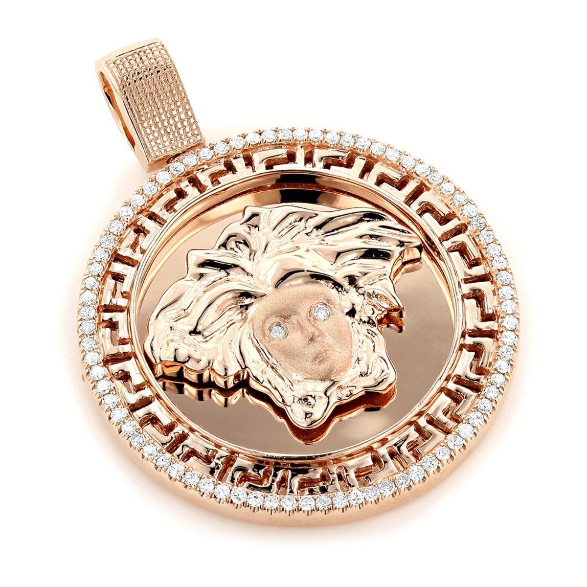 14K Rose Gold Versace Style Diamond Pendant Medusa Medallion 0.62ct