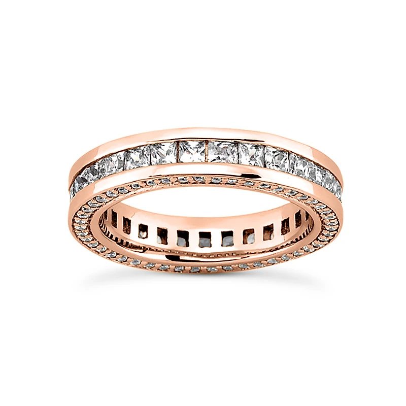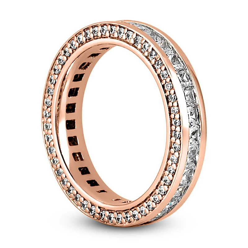 This Princess Cut and Round Diamond Eternity Band features 0.48 carats of round diamonds (96 diamonds) and 1.45 carats of princess cut diamonds (29 diamonds) for a total of 1.93 carats of diamonds. This diamond eternity band is available in Platinum, 18k or 14k yellow, rose, white gold, various sizes, and can be customized with any color and quality diamonds. Price and description is for a ring in 14k gold and size 6. Please note: it will take us 3-5 business days to make this ring for you so please plan accordingly. Please contact us at 212-398-3123 if your size or desired option is not listed.