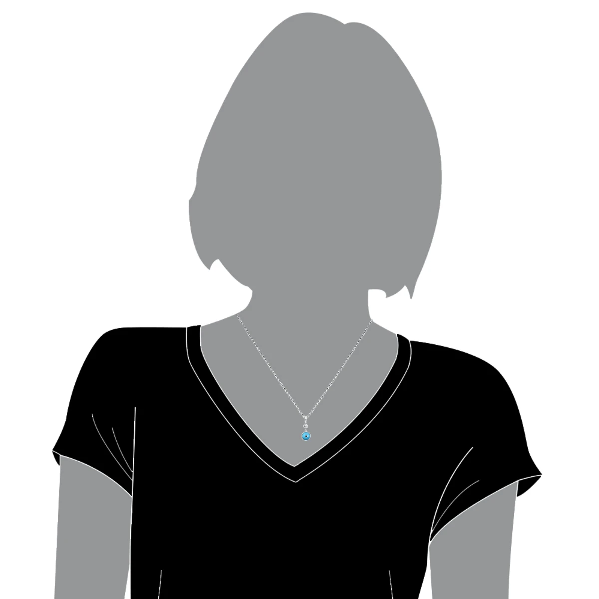 14K White Gold & Diamond Light Blue Evil Eye Pendant 0.10ct