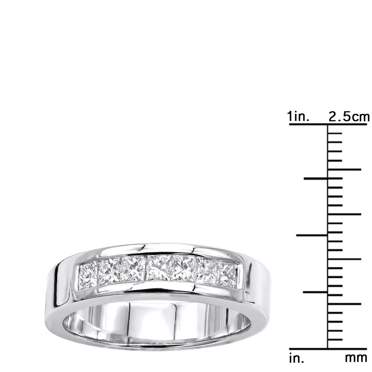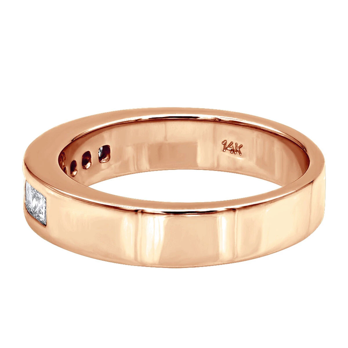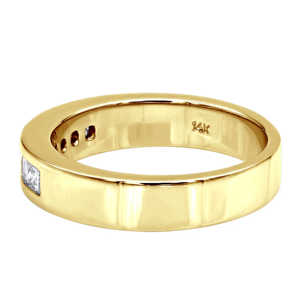 This Diamond Men’s Wedding Ring features 1 carats of princess cut diamonds (7 diamonds). This diamond wedding ring is available in Platinum, 18k or 14k yellow, rose, white gold, various sizes, and can be customized with any color and quality diamonds. Please note: it will take us 3-5 business days to make this ring for you so please plan accordingly. Please contact us at 212-398-3123 if your size or desired option is not listed.