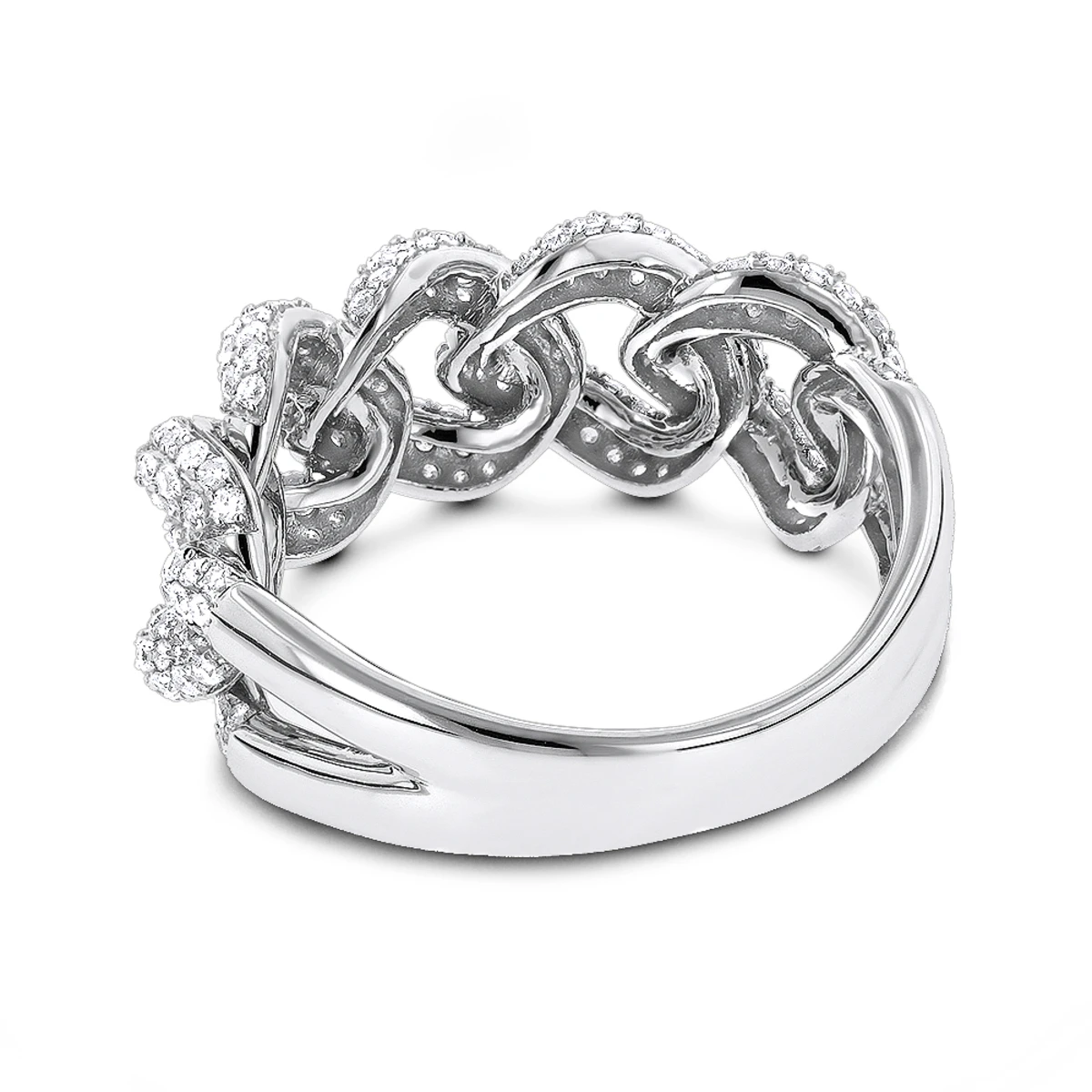 14K White Gold Diamond Miami Cuban Link Chain Ring For Men 1.6ct By Luxurman