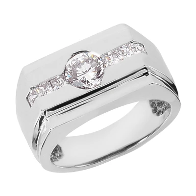 14K White Gold Men’s Round & Princess Diamonds Ring 1.27ct
