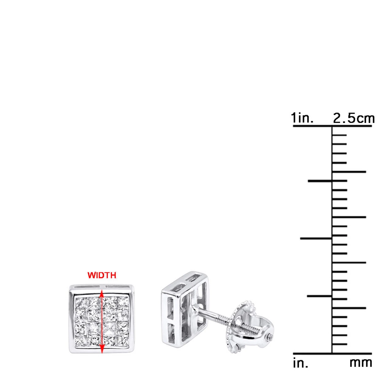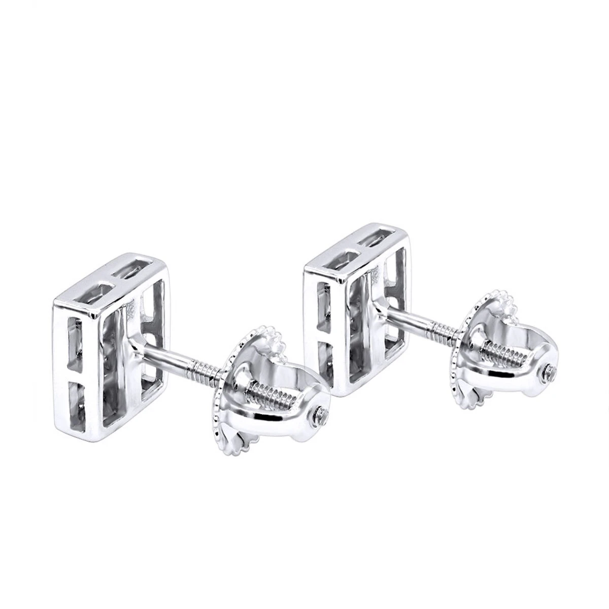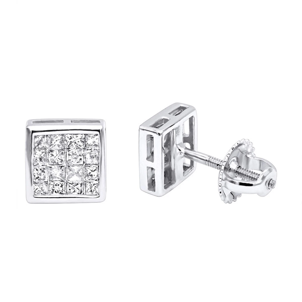 14K White Gold Princess Cut Diamond Stud Earrings 0.54ct