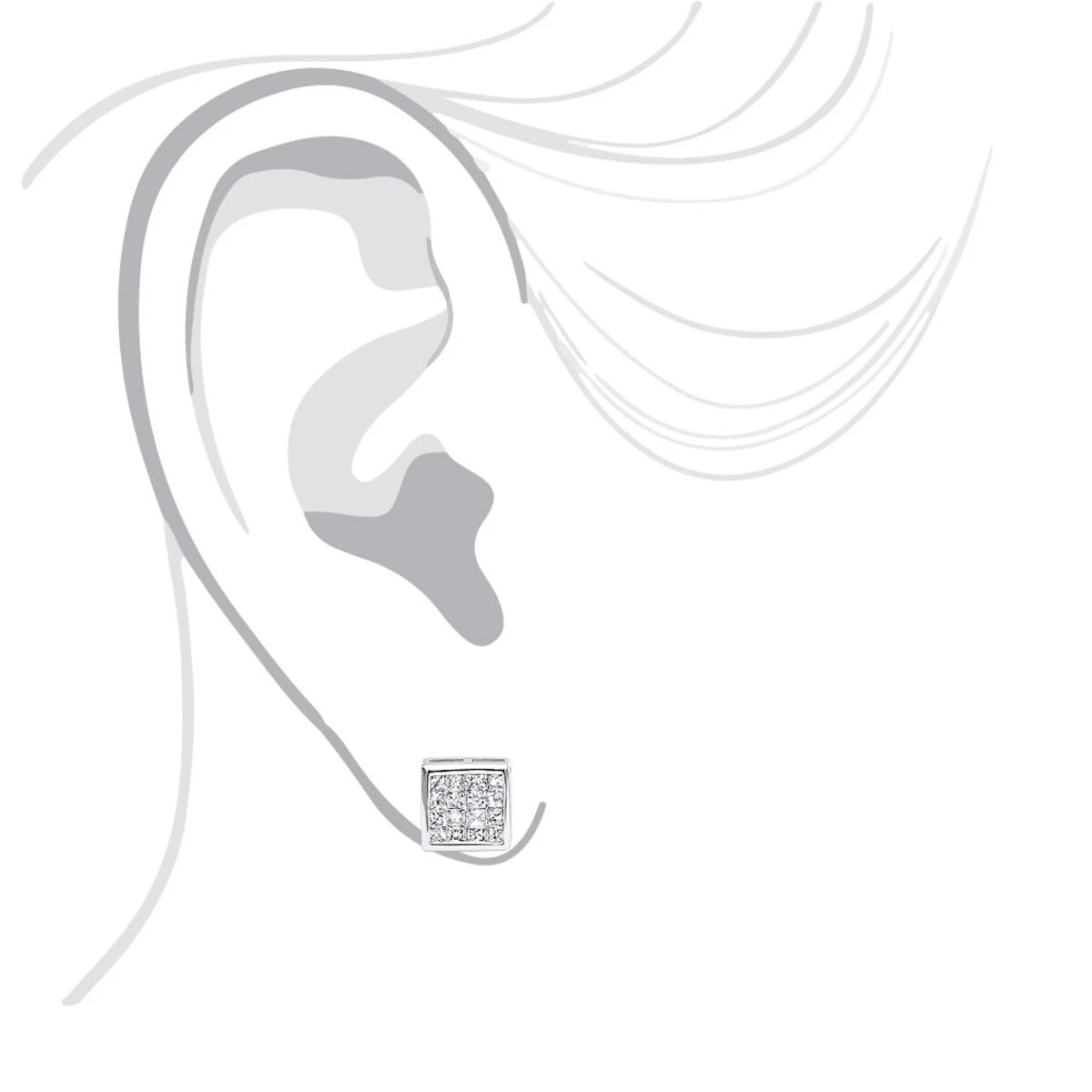 1 Cluster Diamond Earring 0.20ct 14K White Gold Single Earring Men’s