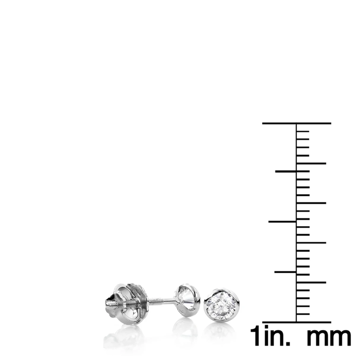 14K White Gold Round Diamond Bezel Stud Earrings 0.50ct