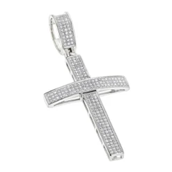 14K White Gold Round Pave Diamond Cross Pendant 0.5ct