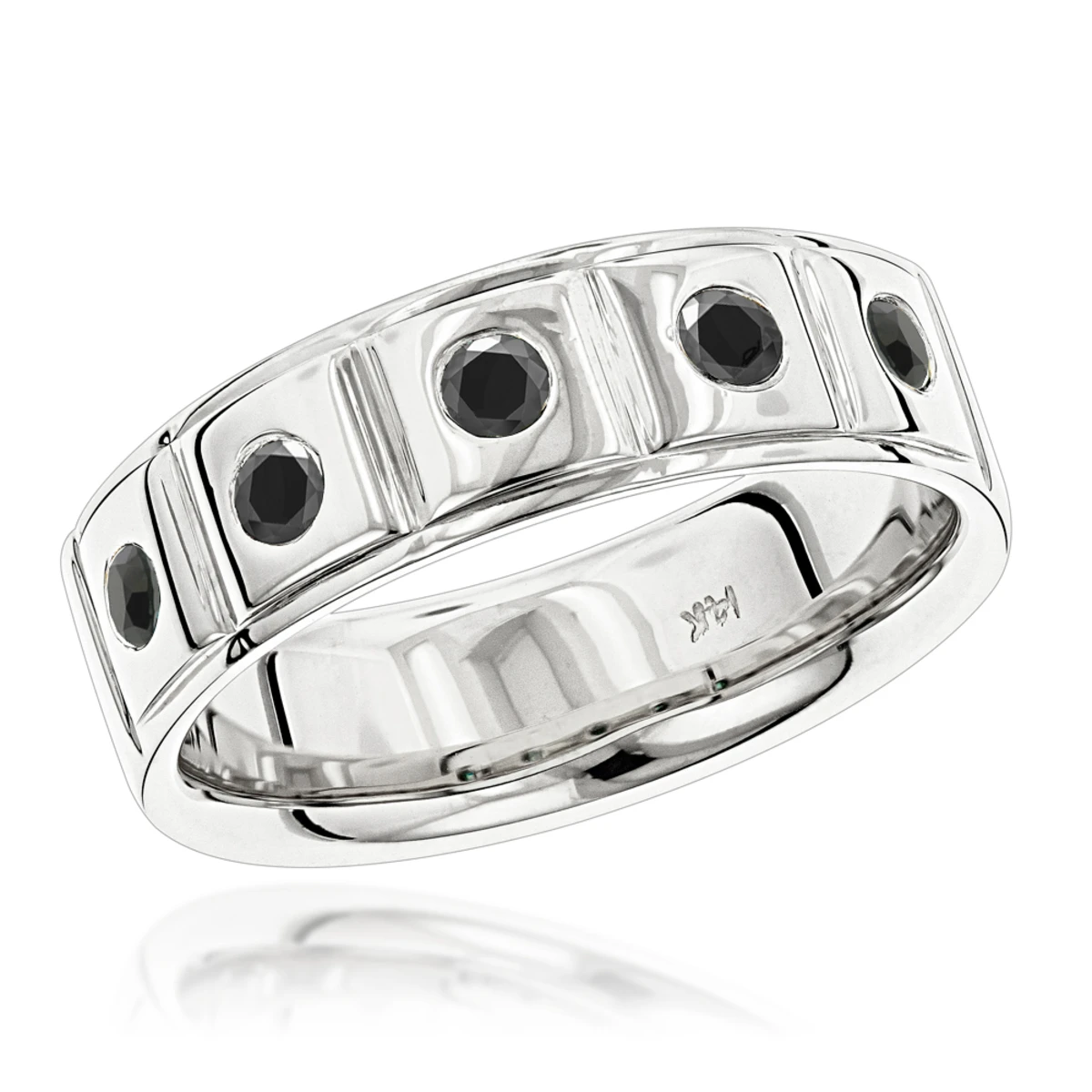 This beautiful 14K Gold Black Diamond Wedding Band for Men is Comfort Fit and showcases 5 black diamonds (totaling 0.3ct) making it a great Five Stone Ring to celebrate an anniversary. Featuring an outstanding quality, this unique black diamond wedding ring for men is available in 14K white gold, yellow gold and rose gold, as well as 18K gold as a custom order and can be customized with any color or clarity diamonds. If desired option is not listed, please contact us for further assistance – 212-398-3123.