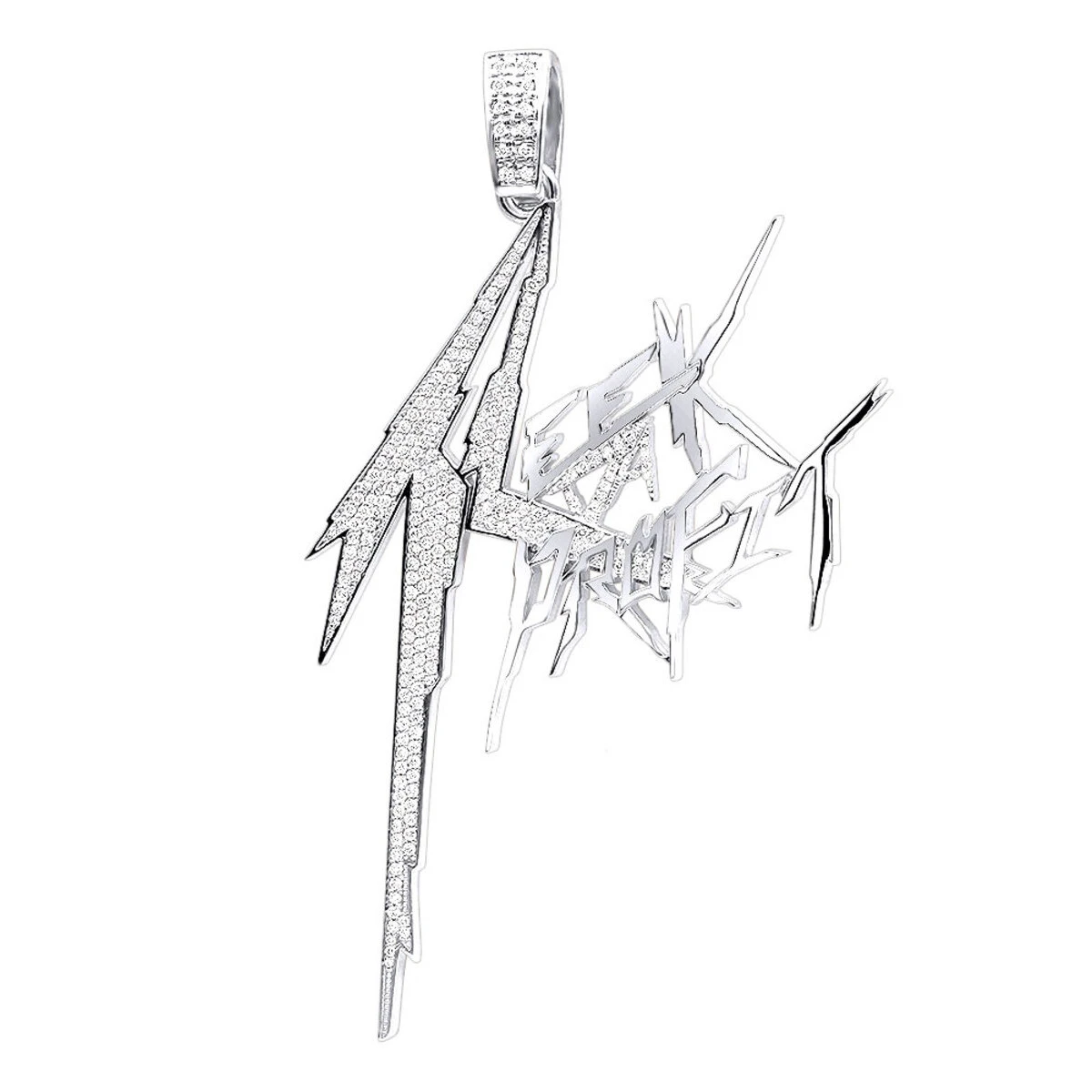 From our men’s diamond pendants collection this Unique Custom Made Men’s Diamond Logo Pendant was made by our custom jewelry department by a request from one of our clients, the pendant was made in solid 14K Gold and paved with 2.5 carats of sparkling round diamonds decorating the intricate lettering. The pendant is quite large being 4in (102mm) long and 2 7/16in (61mm) wide. Contact us to create your own custom pendant, we can make it in 10K, 14K or 18K white gold, yellow gold, rose gold as well as Platinum as a custom order, with any color/clarity diamonds. Please note that it takes 5-10 business days for our jewelers to manufacture depending on how complicated your design. We specialize in custom jewelry and can certainly custom make a pendant with any design or logo of your choice! You also can personalize this piece or check we’ve already made and create your own design.