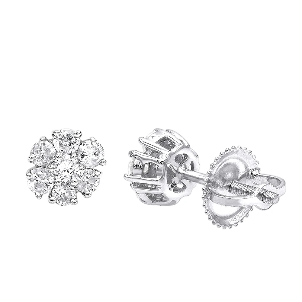 1/2 Carat 14K White Gold Diamond Stud Earrings Round Diamonds .5ct