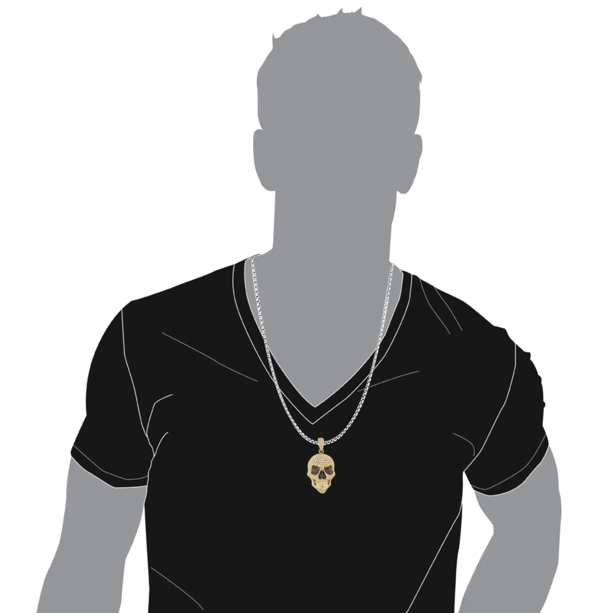 14K Yellow Gold Men’s White Black Diamond Skull Pendant 9.17ct