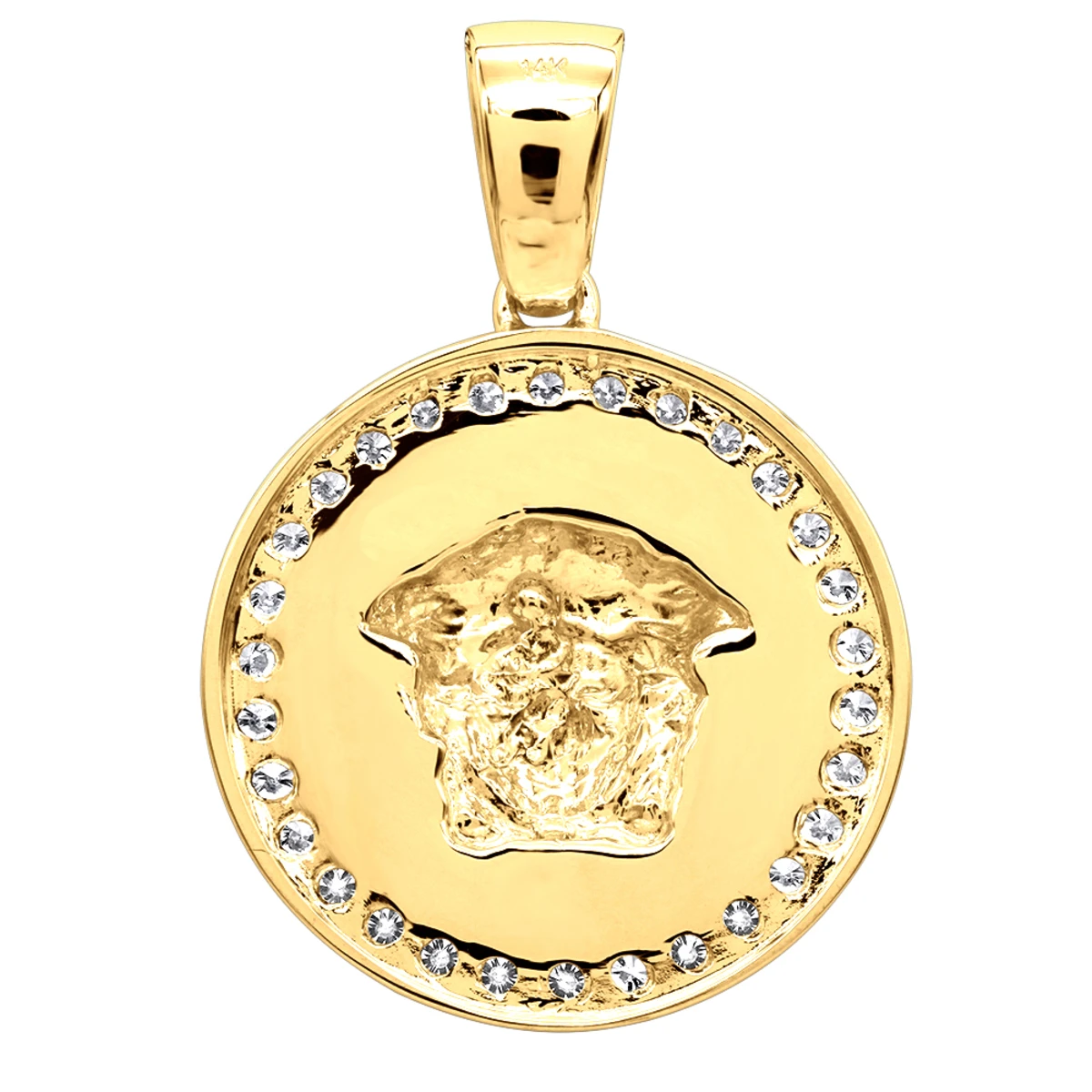 14K Yellow Gold Vintage Versace Style Diamond Pendant Medusa Medallion 2ct