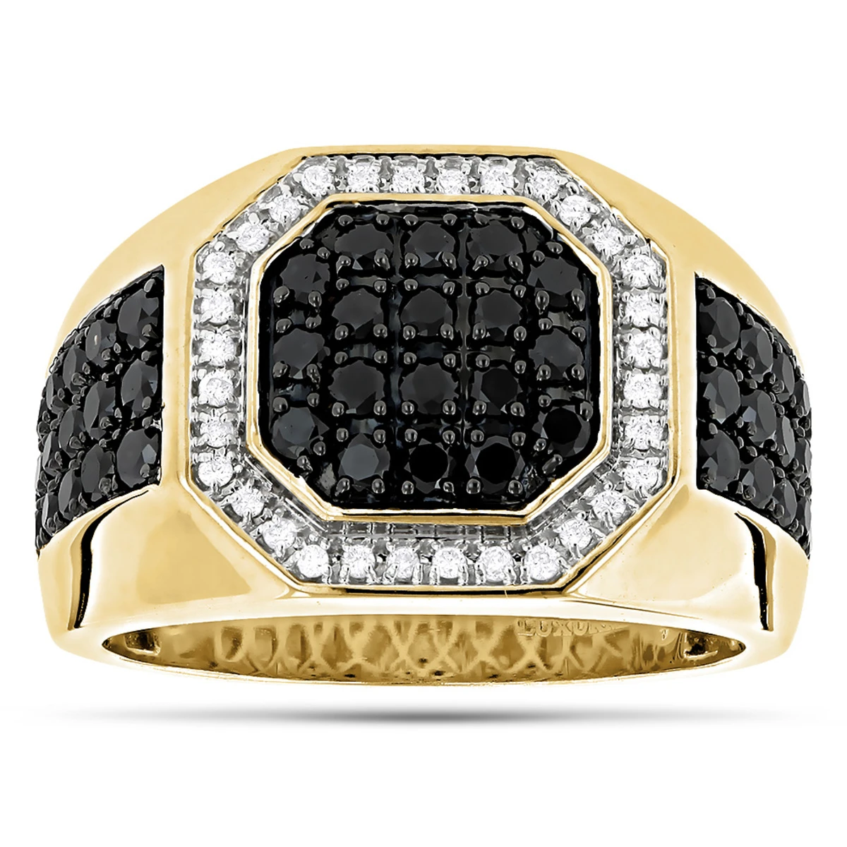 14K Yellow Gold White And Black Diamond Ring For Men Pinky Ring 1.8ct
