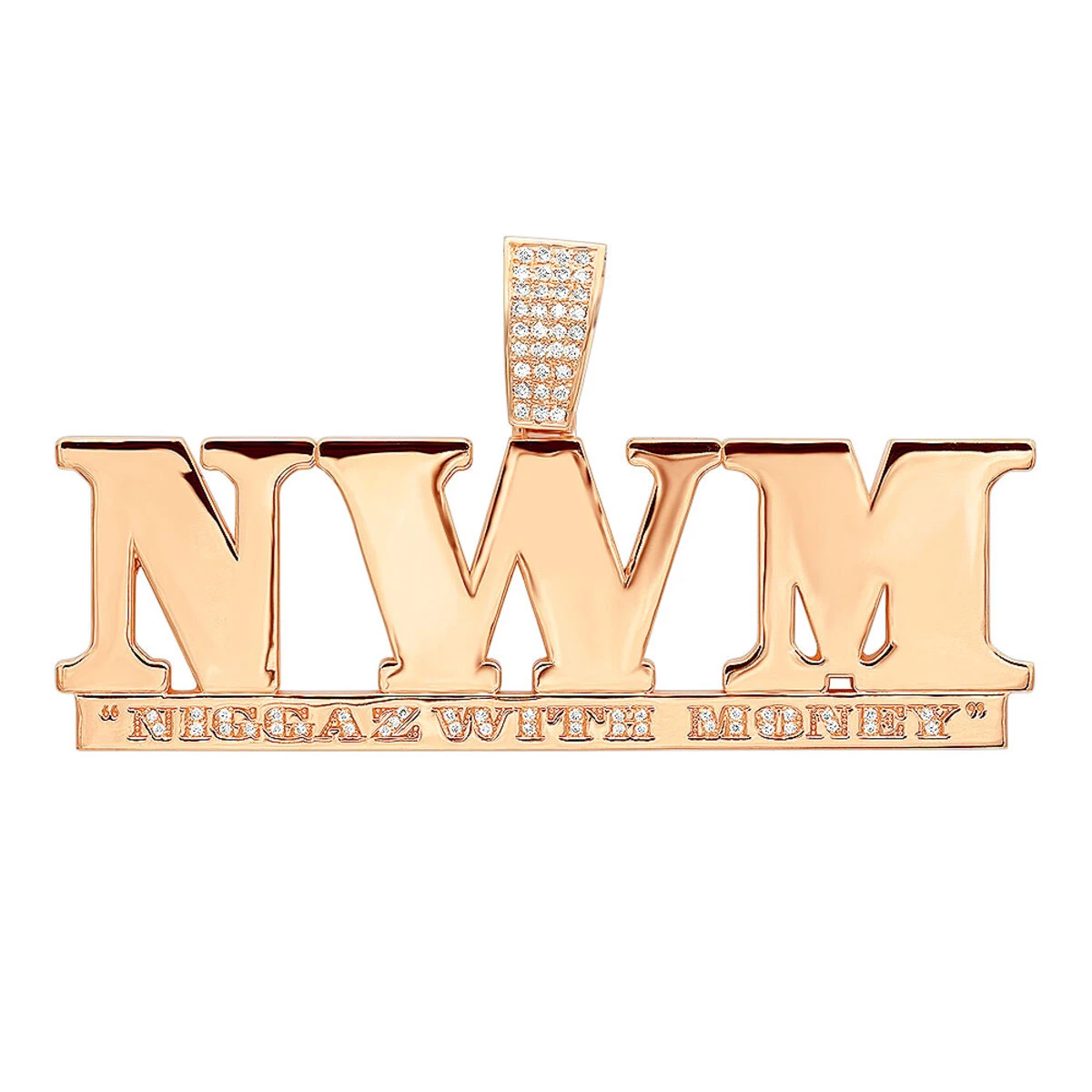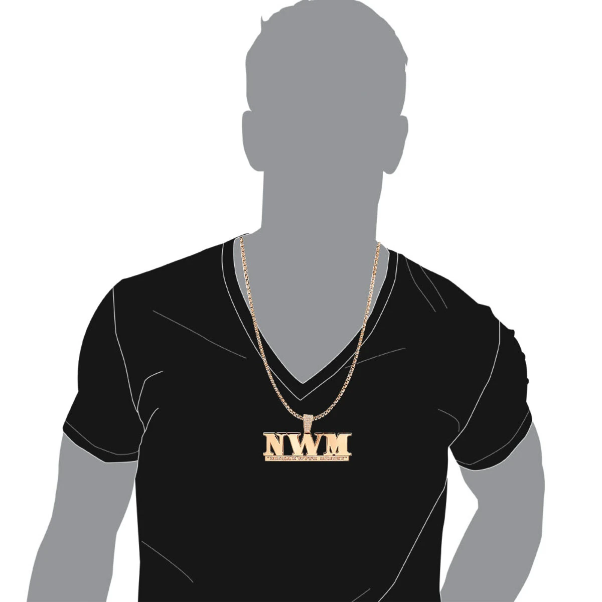 Custom Jewelry Department: get your very own custom name plate done! This 18 Karat Gold Custom Made Name Plate 1 Carat Diamond Pendant for Men from our custom made jewelry collection showcases large NWN letters decorated with a diamond transcript at the bottom and a beautiful bail also encrusted with genuine round diamonds, set in a micro pave setting for a lot of sparkle. Skillful craftsmanship and highly polished gold finish make this diamond pendant an unforgettable gift for a special occasion. This amazing custom diamond pendant for men is quite big being nearly 2 inches: 1 15/16 inches (49mm) long (with bail), 3 3/4 inches (94mm) wide and was made in 18K yellow gold. The pendant weighs approximately 128 grams and will require a rather thick chain that can also be found at ItsHot.com under men’s gold chains menu. Please note that this men’s diamond pendant’s design is fully customizable, so contact us to get your own custom name pendant done. You also can personalize this piece or check we’ve already made and create your own design.