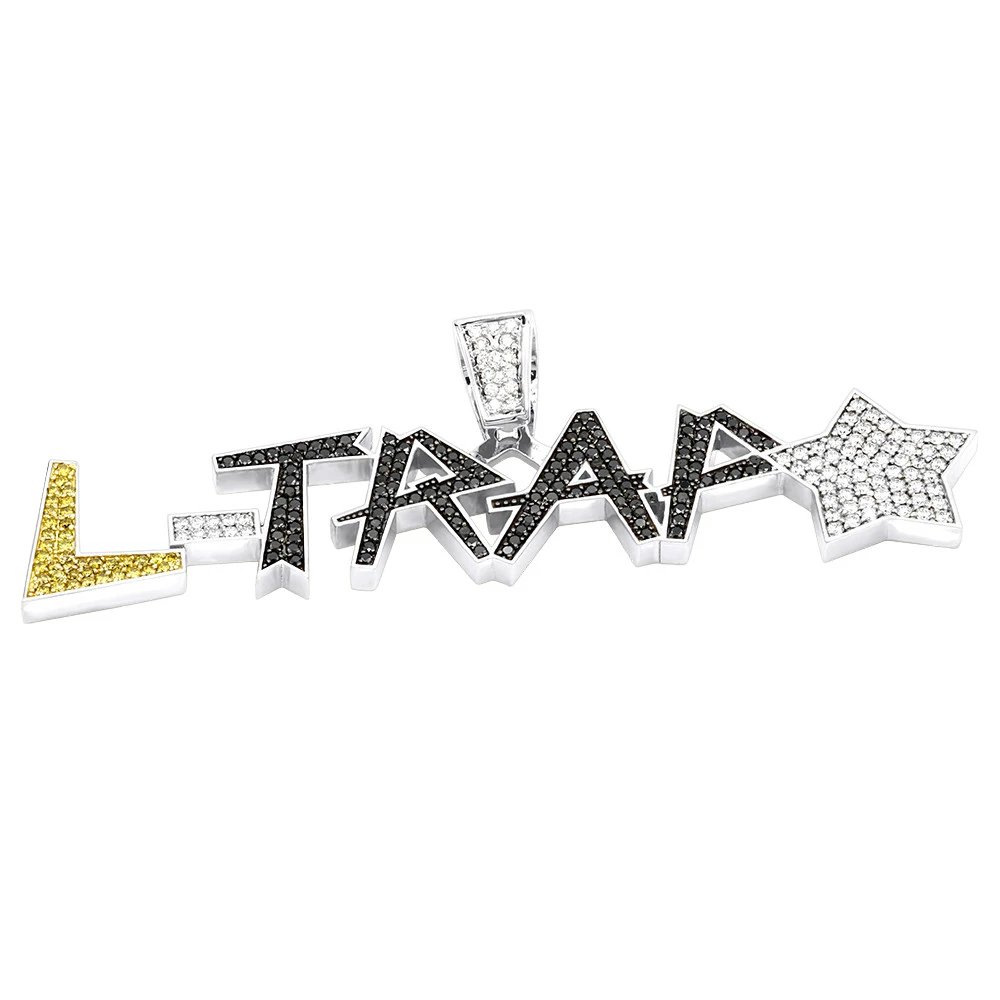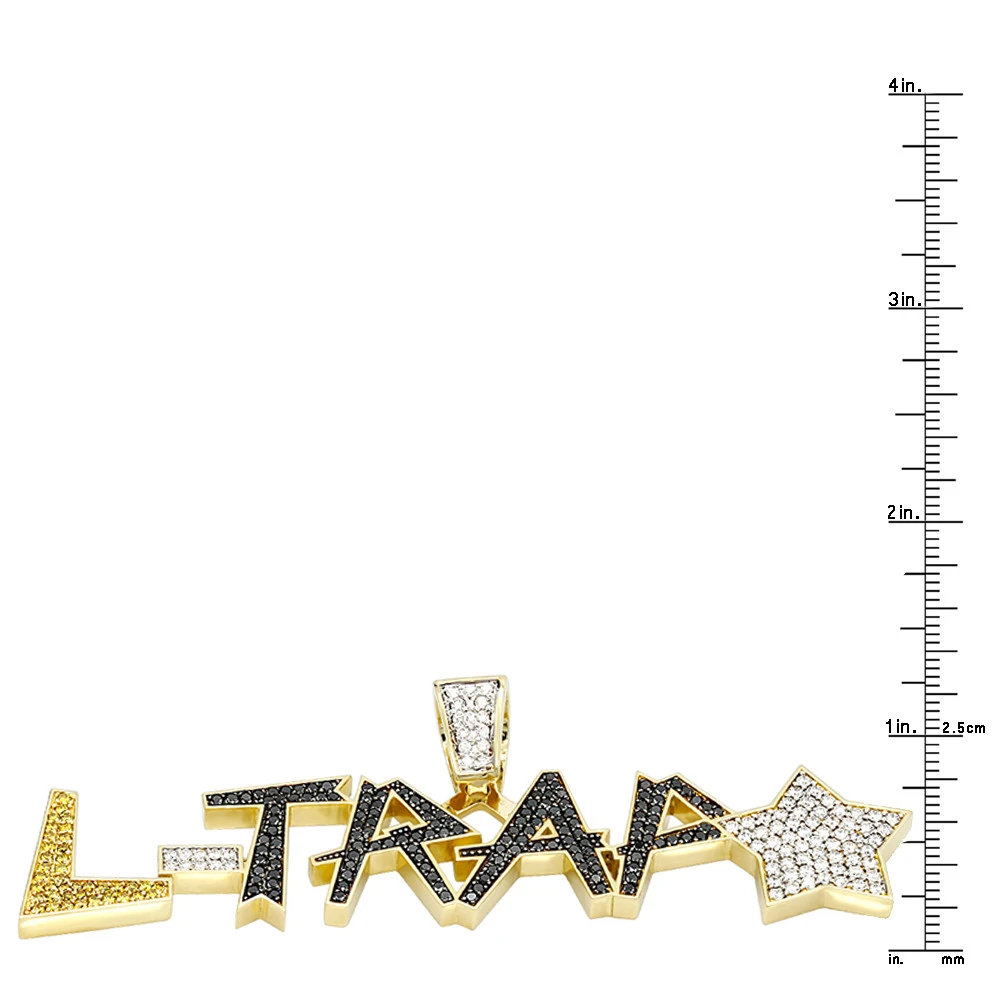 Custom Jewelry Collection: This Unique Custom Made 18K Gold Yellow Black White Diamond Pendant for Men by Luxurman showcases 6 carats of dazzling white, black and yellow round cut sparkling genuine diamonds masterfully pave set in highly polished 18K gold frame. Featuring an eye-catching design and hip hop style this men’s diamond pendant is simply irresistible and available in 18K yellow, white and rose gold, also in platinum as a custom order. Contact us to customize it with your name today! You also can personalize this piece or check we’ve already made and create your own design.