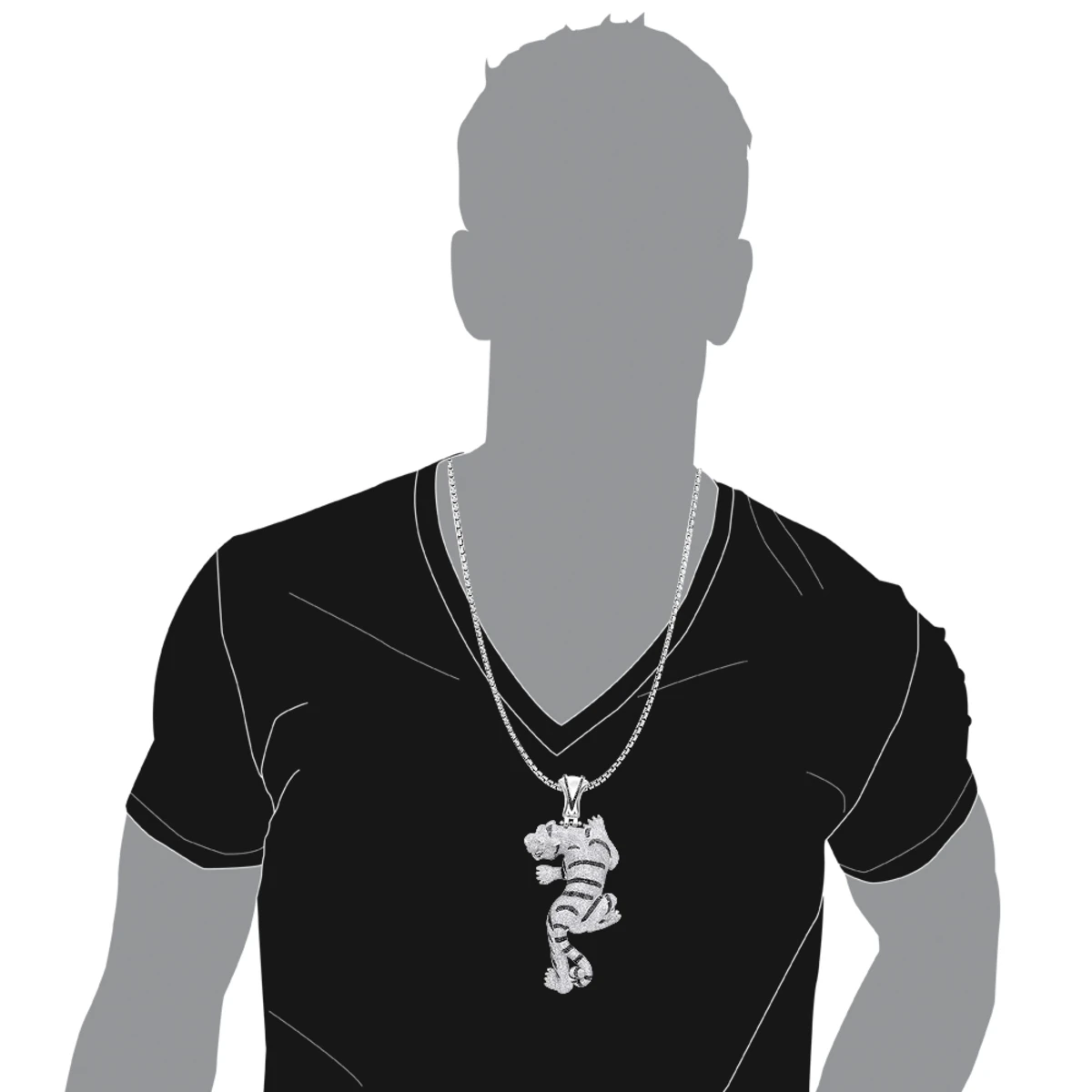 3D 10K White Gold Black White Diamond Tiger Pendant For Men 8.5ct By Luxurman