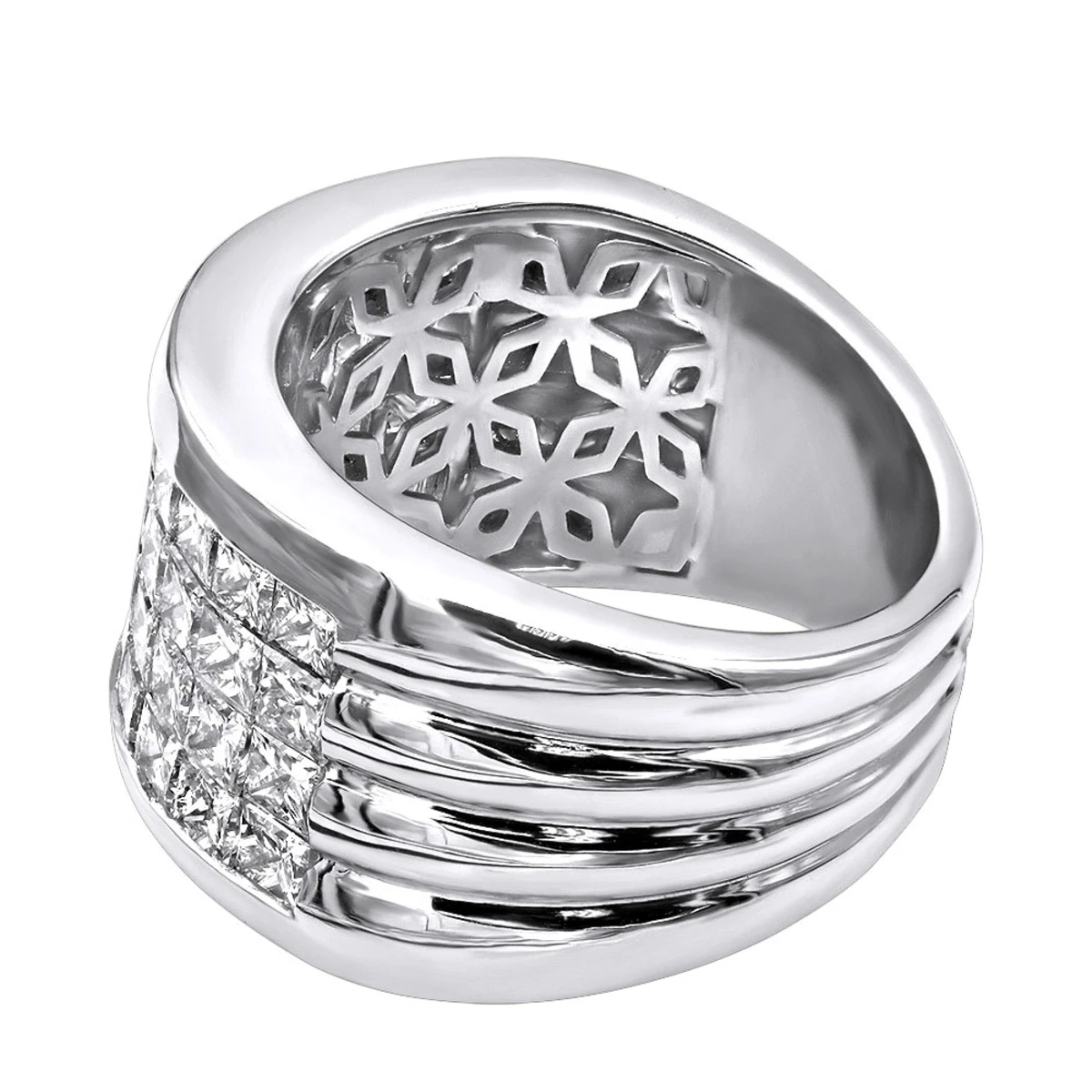 Luxurman Platinum Diamond Wedding Rings: This Princess Cut Diamond Wedding Band for Women or Men features a classy unisex design done in 95% Platinum with 5 Carats of top F-G color VS clarity invisible set princess cut diamonds, a true statement jewelry piece this ring can be used as a unique diamond wedding band or a regular ring, even as a pinky ring, but no matter how it is used it will for sure stand out with a great design and amazing shine.