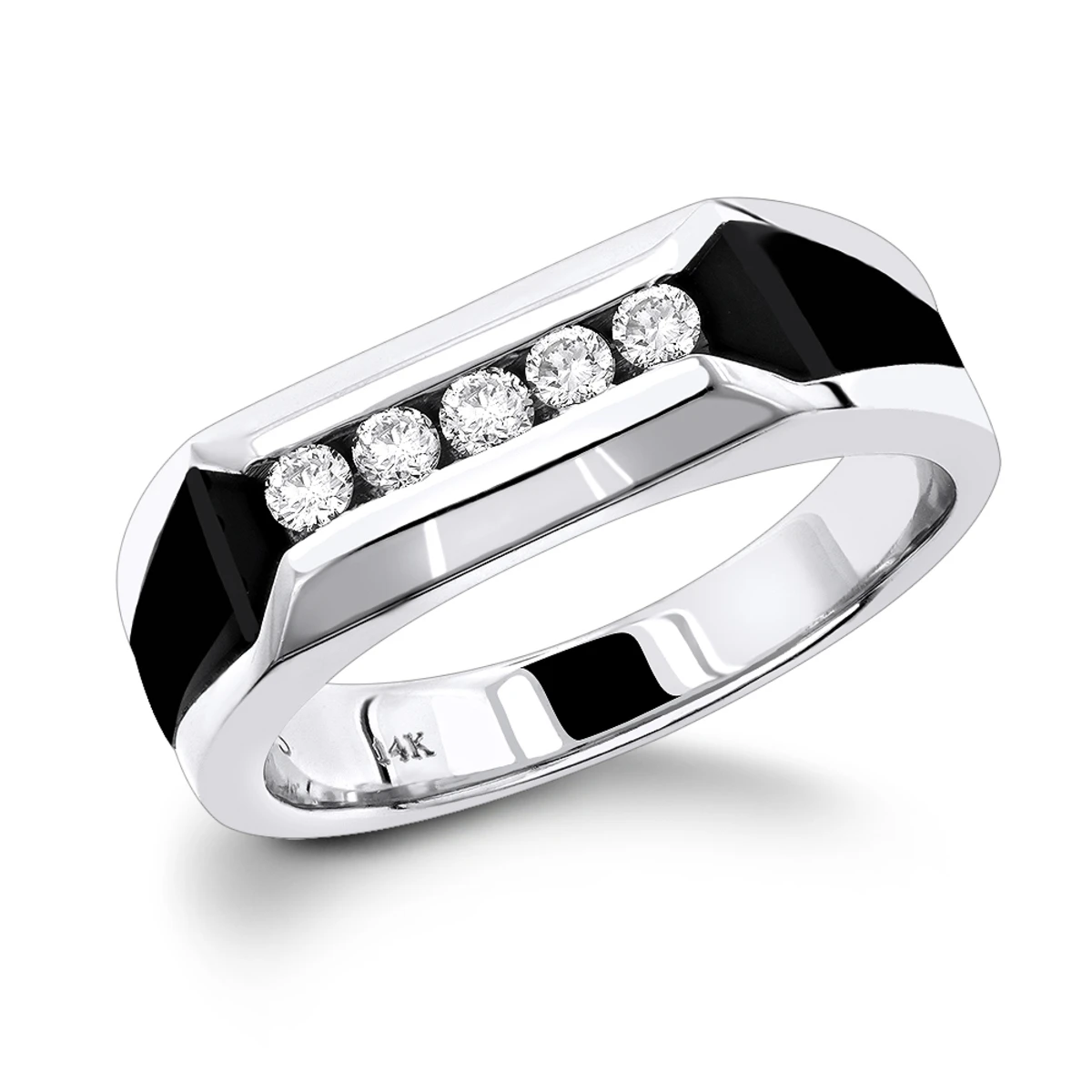 5 Stone 14K White Gold Round Diamond Men’s Wedding Ring With Onyx 0.25ct