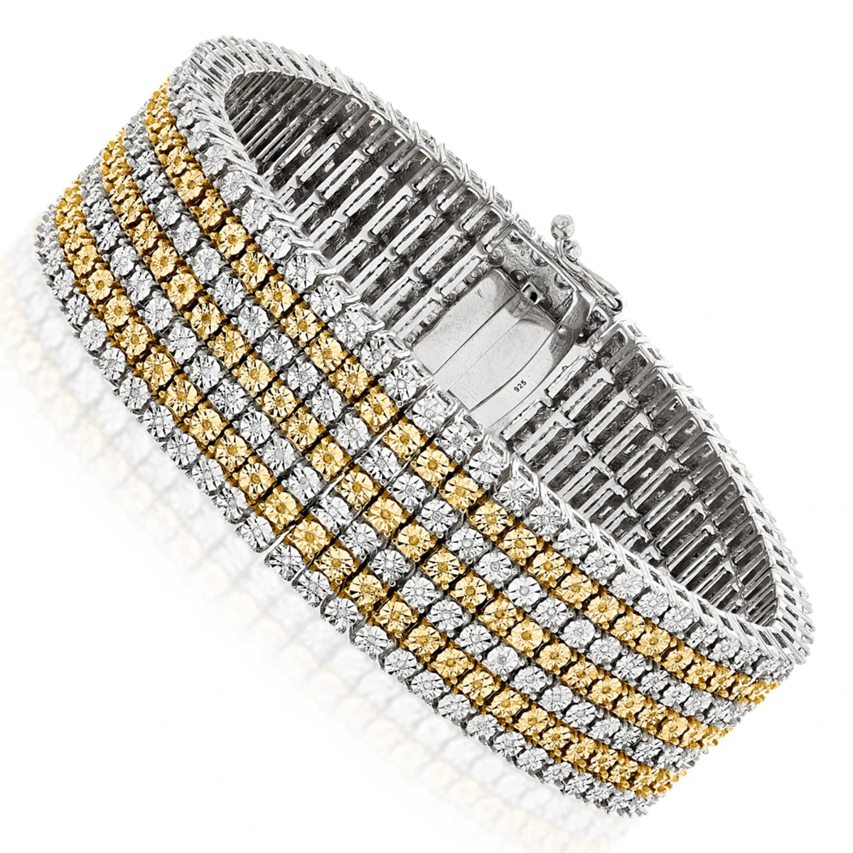7 Row White And Yellow Diamond Bracelet For Men 1.5ct Sterling Silver