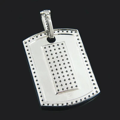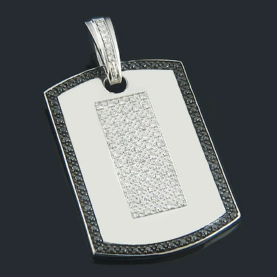 Black And White Diamond Dog Tag Pendant 1.19ct Sterling Silver