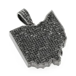 Custom Pendants: This Black Diamond Ohio State Pendant in Sterling Silver weighs approximately 48 grams and showcases 14 carats of black diamonds and black rhodium plating. Featuring an intricate design in a form of a Ohio State outline this pendant can be customized according to your specifications on a per order basis. Contact us if you would like to customize this pendant or create a similar custom pendant. You also can personalize this piece or check we’ve already made and create your own design.