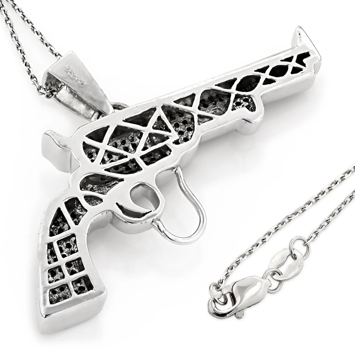 Black Diamond Sterling Silver Gun Pendant .9ct