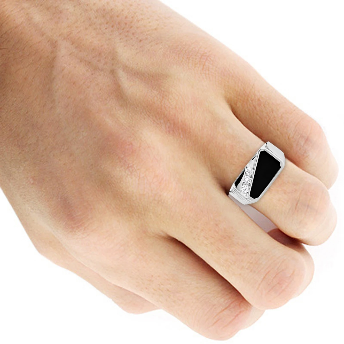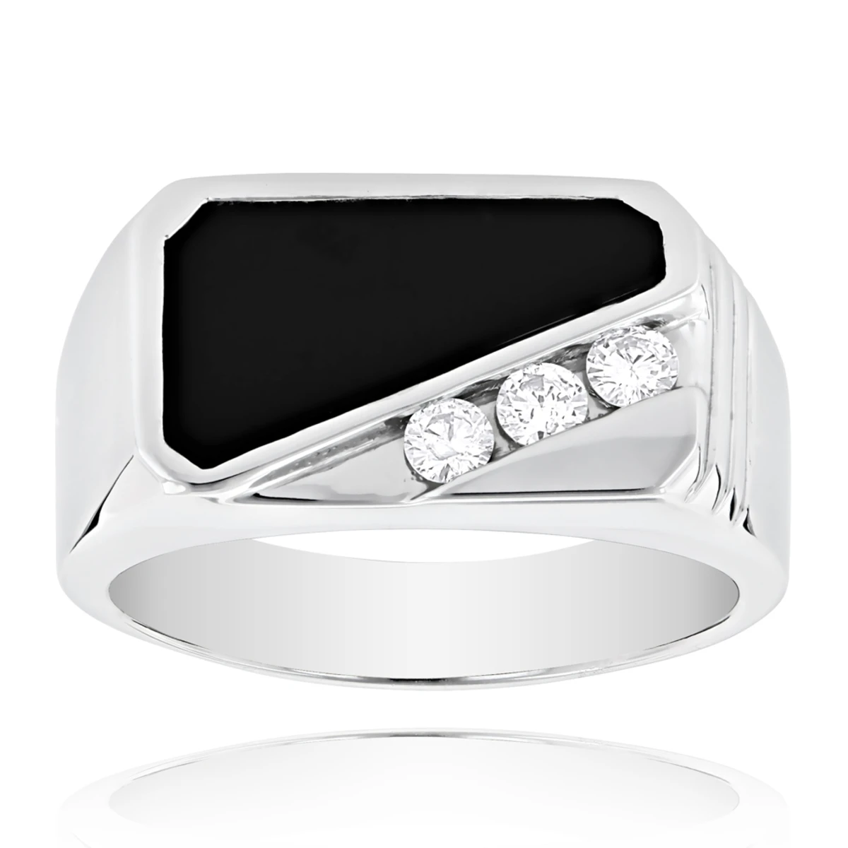 Black Onyx 14K White Gold Men’s Diamond Ring 0.30ct