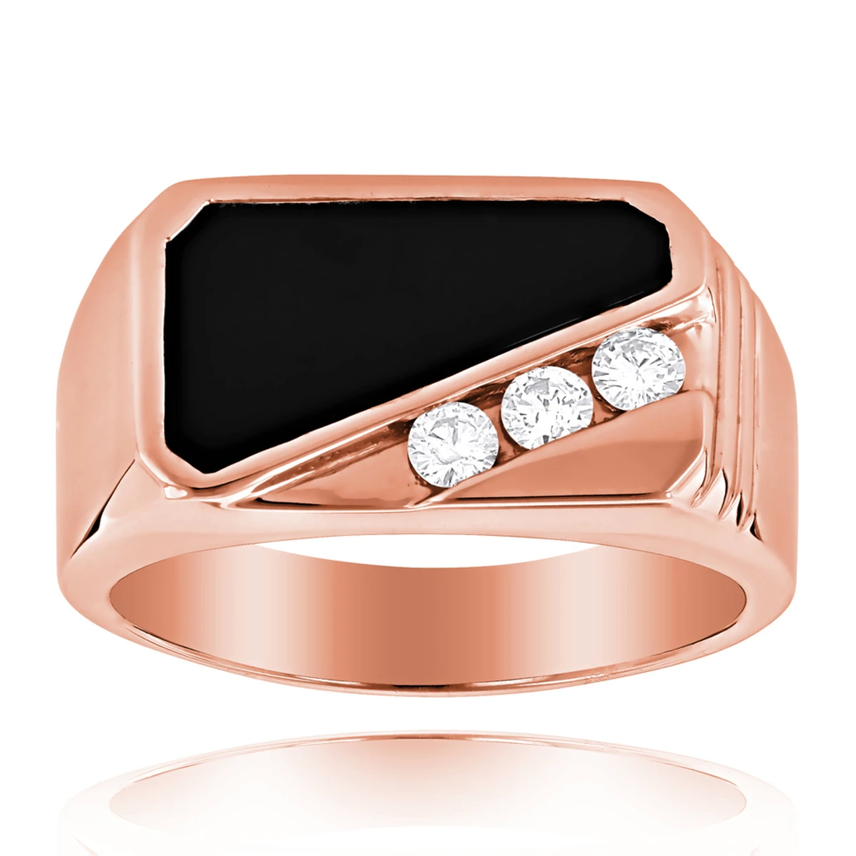 This Men’s Diamond Ring with Black Onyx features 0.30 carats of round diamonds (3 diamonds). This men’s diamond ring is available in Platinum, 18k or 14k yellow, rose, white gold, various sizes, and can be customized with any color and quality diamonds. Please note: it will take us 3-5 business days to make this ring for you so please plan accordingly. Please contact us at 212-398-3123 if your size or desired option is not listed.