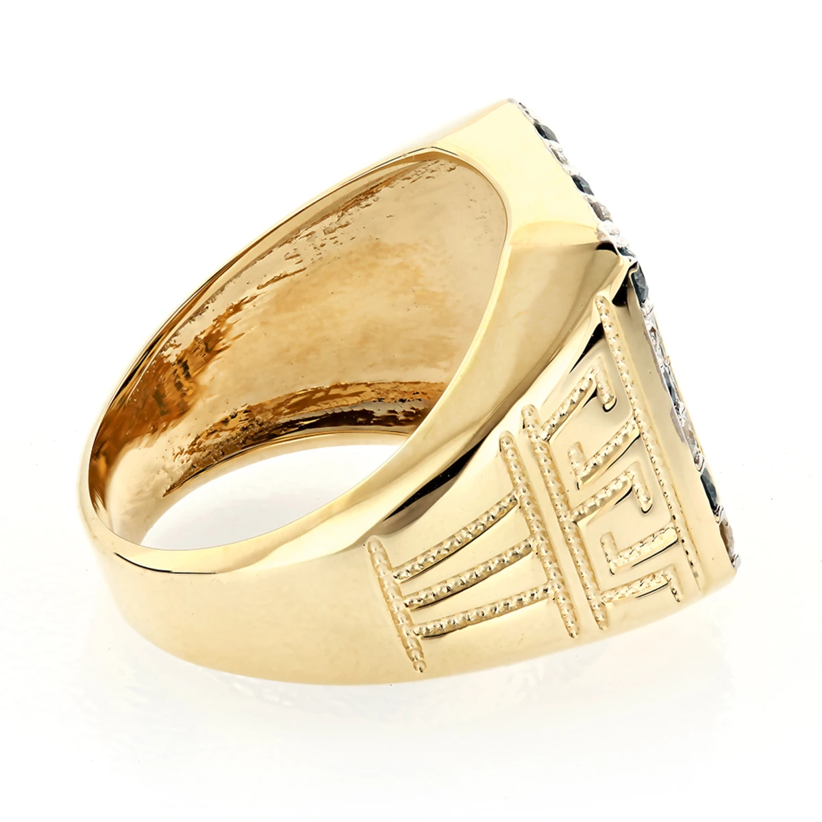 Luxurious Black Onyx and Diamond Rings! This 14K Gold Men’s White Blue Diamond Ring weighs approximately 11 grams and showcases a beautiful black onyx and 1.68 carats of sparkling, prong-set round white and blue diamonds. Featuring a highly polished and textured gold finish, this men’s black onyx and diamond ring is available in your choice of 14K white, yellow and rose gold, and makes a perfect gift for any occasion. This men’s diamond and onyx ring can also be manufactured with different color diamonds or a color diamond combination of your choice.