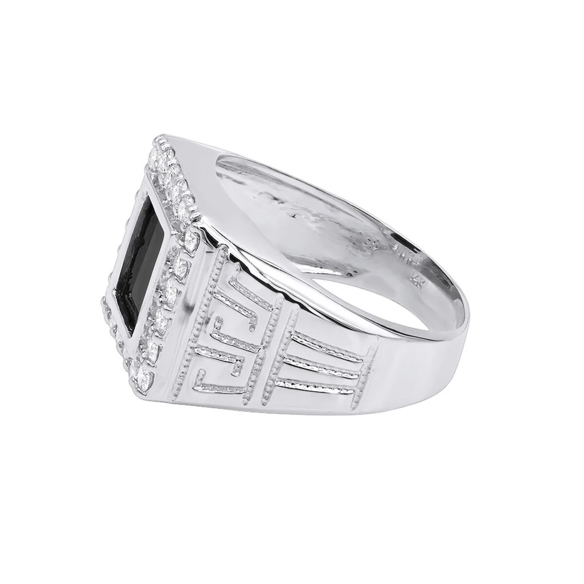 Luxurious Black Onyx and Diamond Rings! This 14K Gold Men’s Ring weighs approximately 11 grams and showcases a beautiful black onyx in the center and 1.50 ctw of sparkling, prong-set round diamonds on the sides. Featuring a highly polished and textured gold finish, this men’s black onyx and diamond ring is available in your choice of 14K white, yellow and rose gold, and makes a perfect gift for any occasion. This men’s diamond and onyx ring can also be manufactured with different color diamonds or a color diamond combination of your choice.