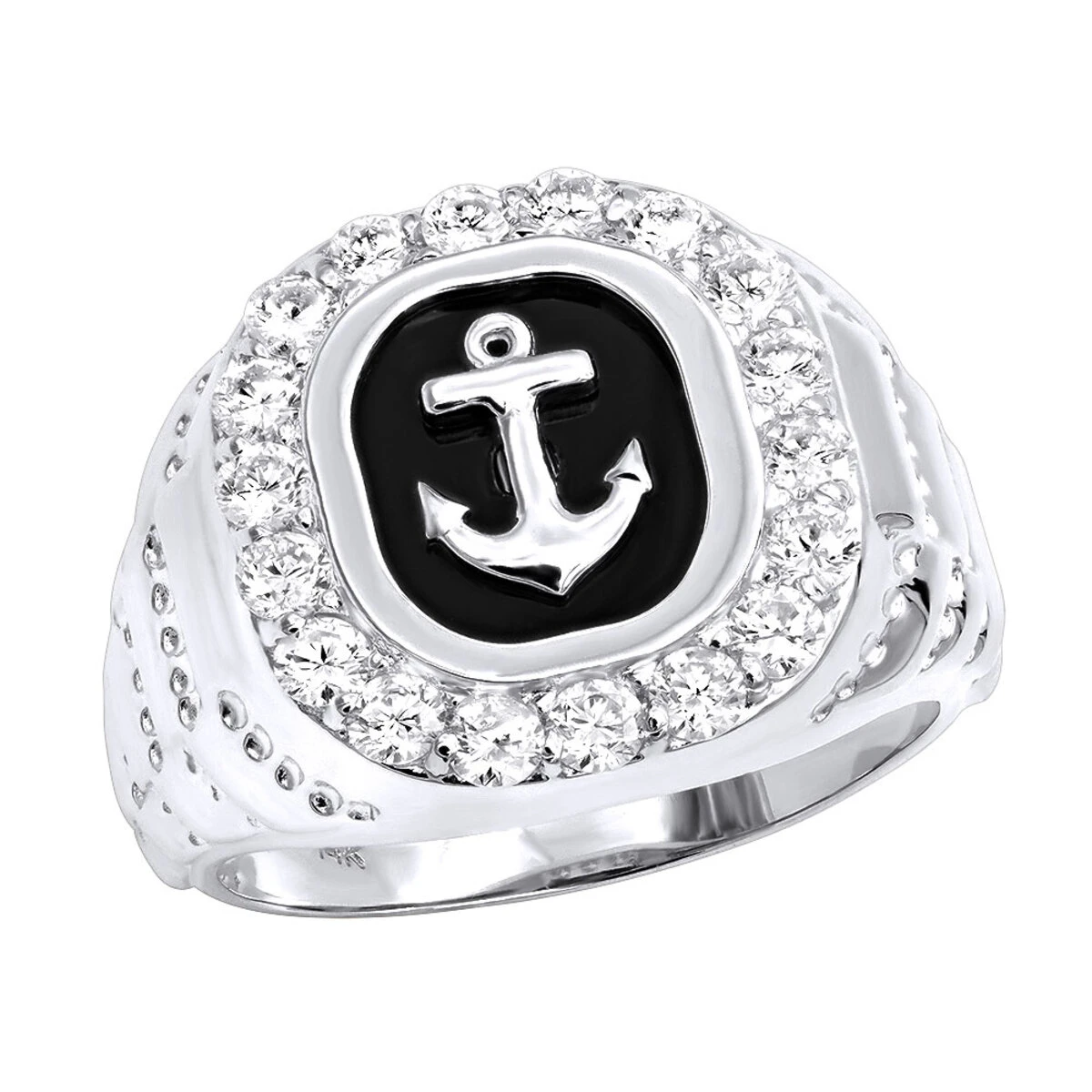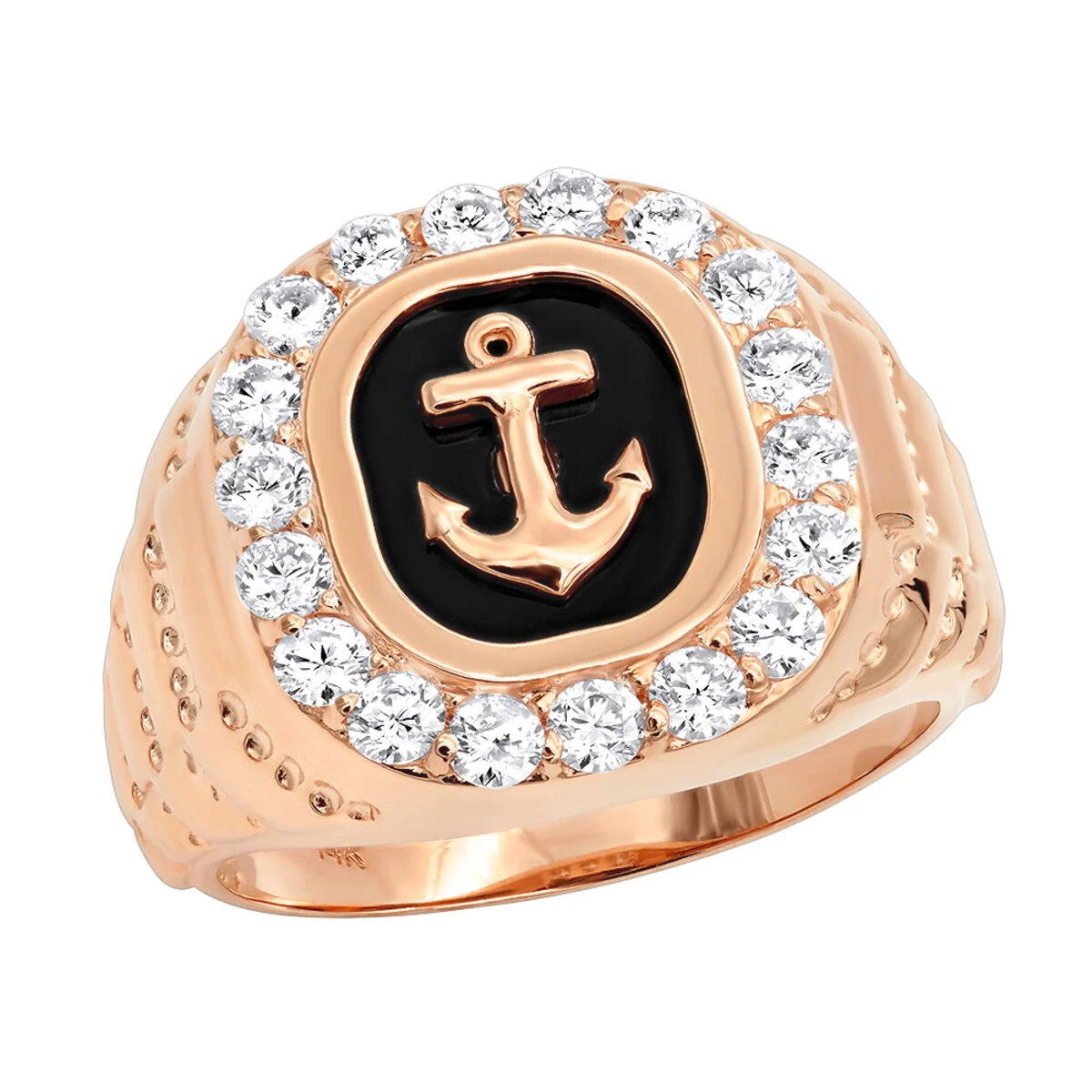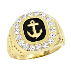 From our diamond rings for men collection this black onyx men’s diamond ring is made in solid 14k gold, with black onyx in the center with a gold anchor, the ring features popular square shape design with sparkling round diamonds set around the top of the ring. The anchor is a very meaningful symbol which symbolizes stability, safety, security, confidence, hope, good luck and consistent strength, anchor also represents overcoming adversity and being resilient making this men’s diamond ring an amazing and meaningful present. The ring is available in 14k white gold, yellow gold, rose gold, as well as 18k gold and Platinum as a custom order. This men’s diamond and onyx ring can also be manufactured with different color diamonds or a color diamond combination of your choice. Order this ring as is or contact us if you would like to customize it!