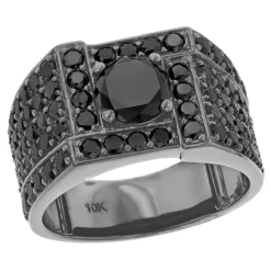 Black Plated 10K Black Plated Gold Black Diamond Ring For Men 4ct By Luxurman