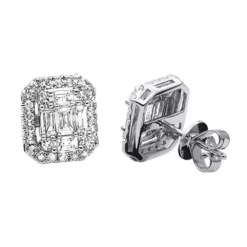Cluster Diamond Stud Earrings For Men Women Emerald Shape 2 Carats 14K White Gold