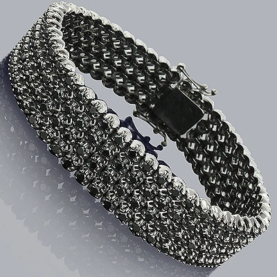 Custom Black Diamond Bracelet 4 Rows 10K Gold 11.00ct