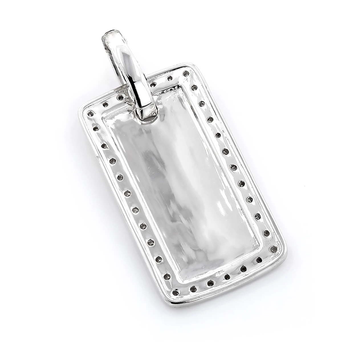 Customizable 14K White Gold Round Diamond Dog Tag Pendant 0.8 Ct