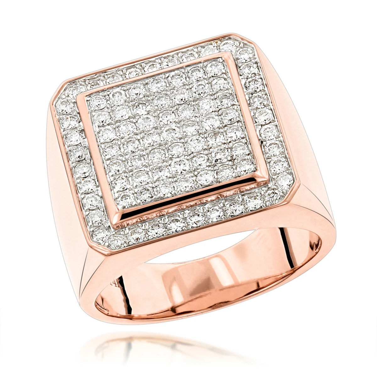 Designer Pinky Rings: This Men’s Diamond Gold Ring by Luxurman showcases 1.63 carats of dazzling round diamonds masterfully pave set in 14K gold base and makes a perfect diamond pinky ring. This diamond ring for men features gallery on the back for comfort wear and is available in 14K yellow gold, rose gold and white gold and will make a great present for your man!