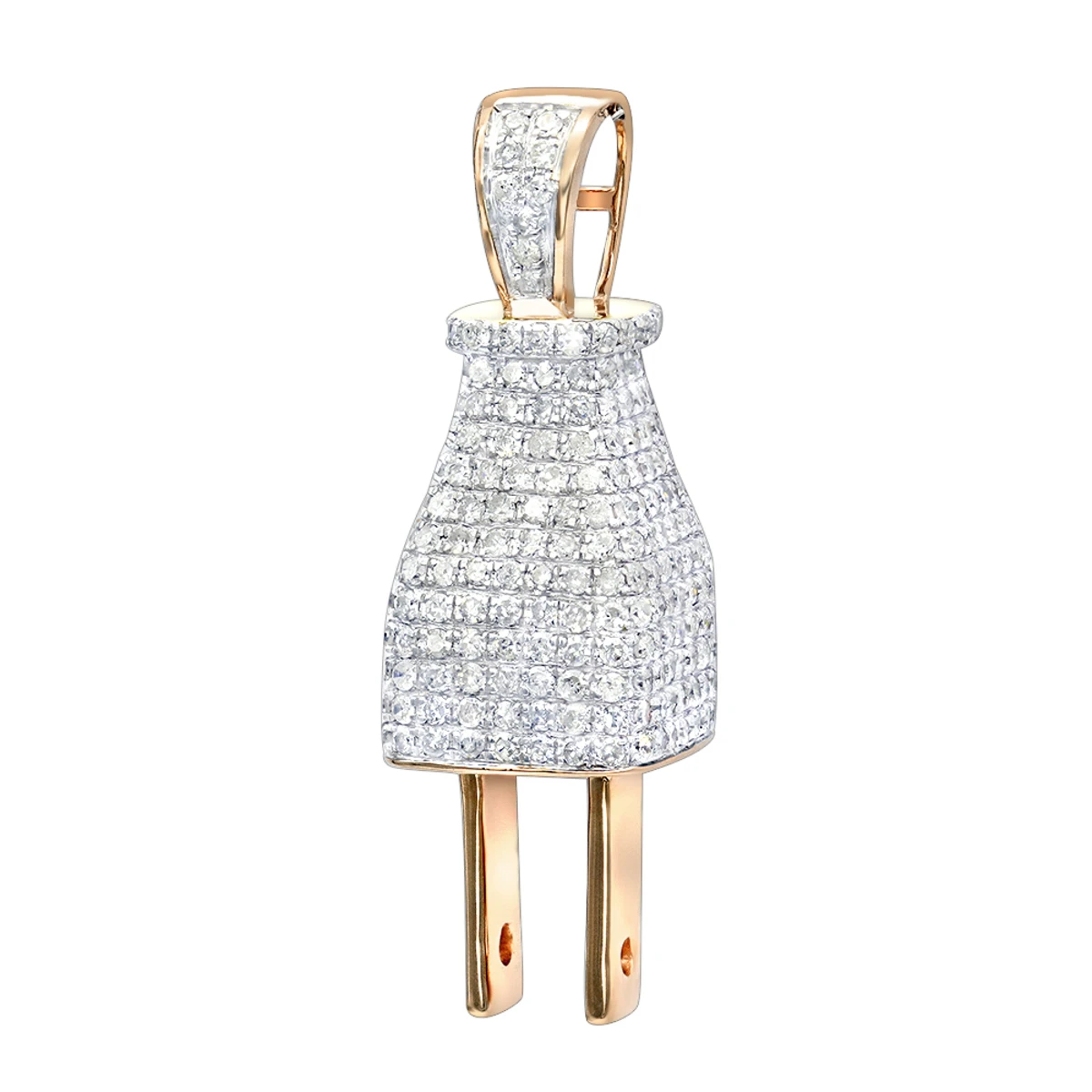 Real Hip Hop Jewelry: this genuine diamond and gold diamond power plug pendant for men features a 3D designed power plug done in 10k gold and fully paved in 2.5 carats of genuine diamonds (diamonds are on all sides of the pendant), this unique men’s diamond pendant from our hip hop diamond jewelry collection is available in 10k yellow gold, white gold and rose gold. Buy it before it is sold out! You also can personalize this piece or check we’ve already made and create your own design.