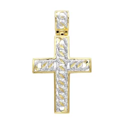 Hip Hop 10K Yellow Gold Cuban Link Chain Diamond Cross Pendant For Men
