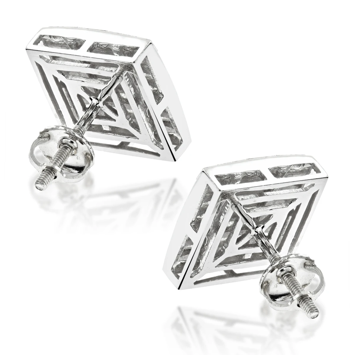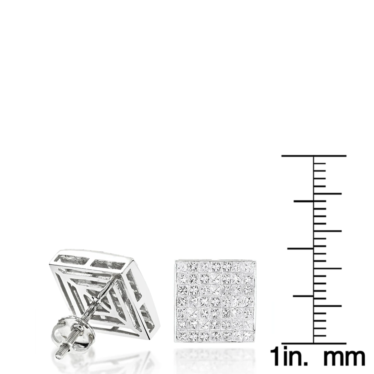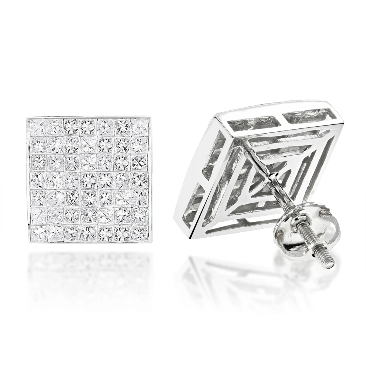 Invisible Set Princess Cut Diamond Stud Earrings 3.05ct 14K White Gold