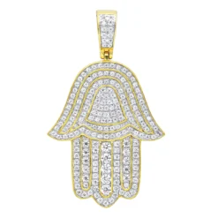 Jewish Large Iced Out Hamsa Hand Pendant 14K Yellow Gold 2CT Diamond Charm