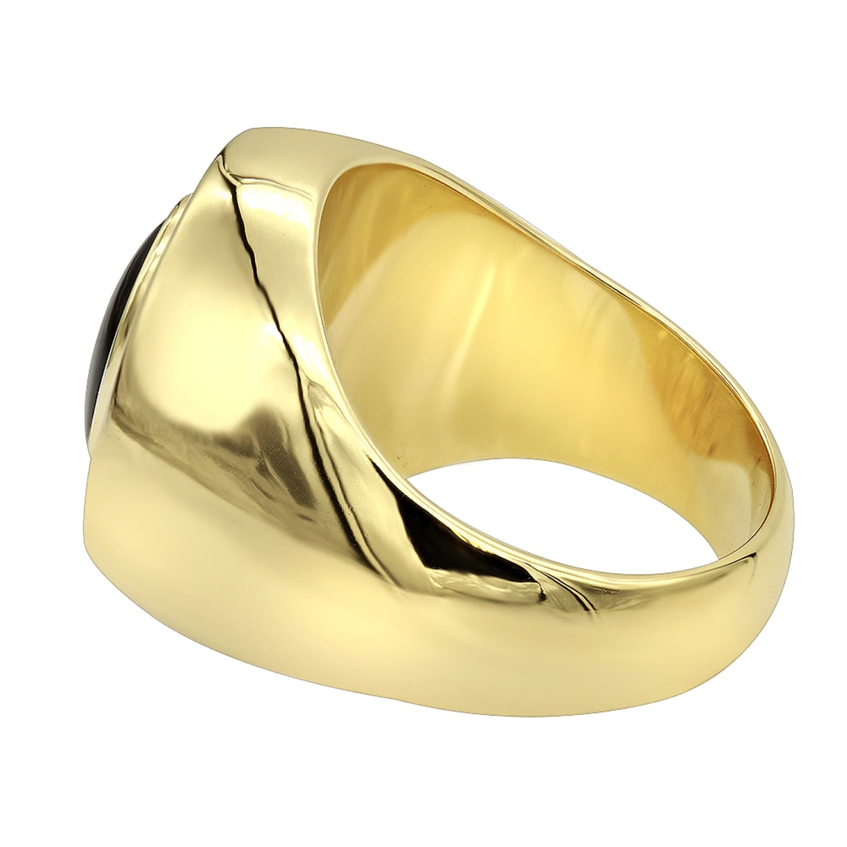 Large 1 Carat Black Onyx Diamond Ring For Men 14K Yellow Gold Pinky Ring