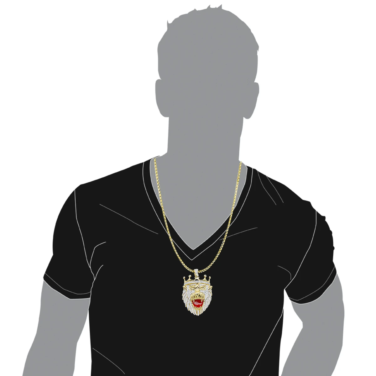 This stylish Solid 10K Gold Diamond Lion Head Pendant for Men by Luxurman weighs approximately 42 grams and showcases a detailed 3D design of a lions head with a crown, decorated with 4 carats of sparkling G/VS quality round cut diamonds set into lions mane, eyes and a crown. This eye-catching men’s diamond pendant has a very masculine design of a lions head with a crown, amazing detail with even tongue and mouth decorated with red enamel. This beautiful lion head diamond pendant for men is available in 10K yellow gold, white gold and pink gold. You also can personalize this piece or check we’ve already made and create your own design.