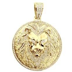 Large 4in Diamond Lion Pendant For Men 14K Yellow Gold Medallion 10 Carats